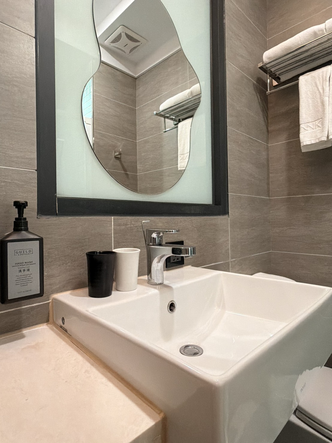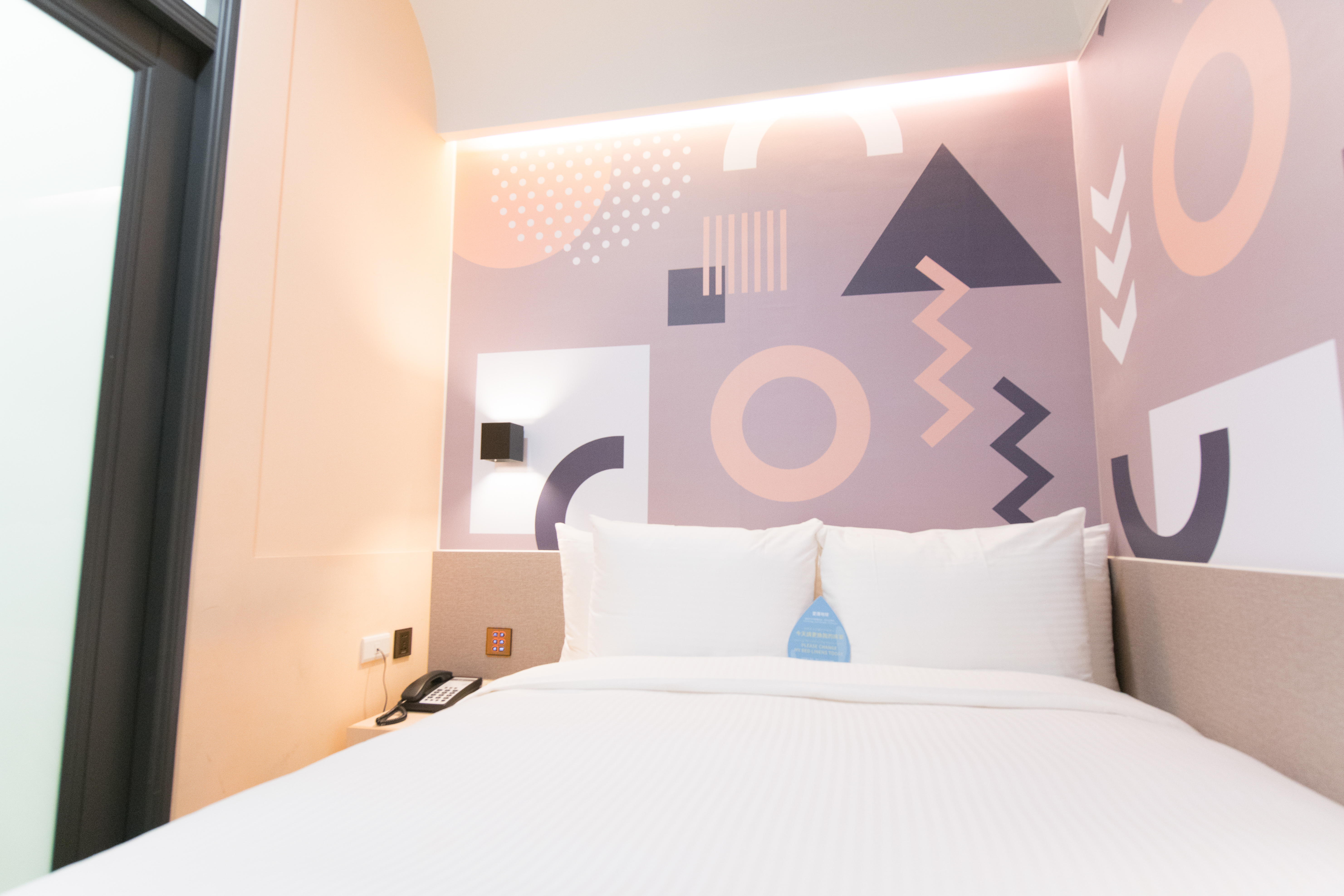 精緻而舒適,每間客房皆含雙人床一張,面積約占5坪,客房附有乾濕分離衛浴、32吋液晶電視等設備,沐浴備品特別選用歐萊德或Guild + Pepper系列,並可享有免費礦泉水。