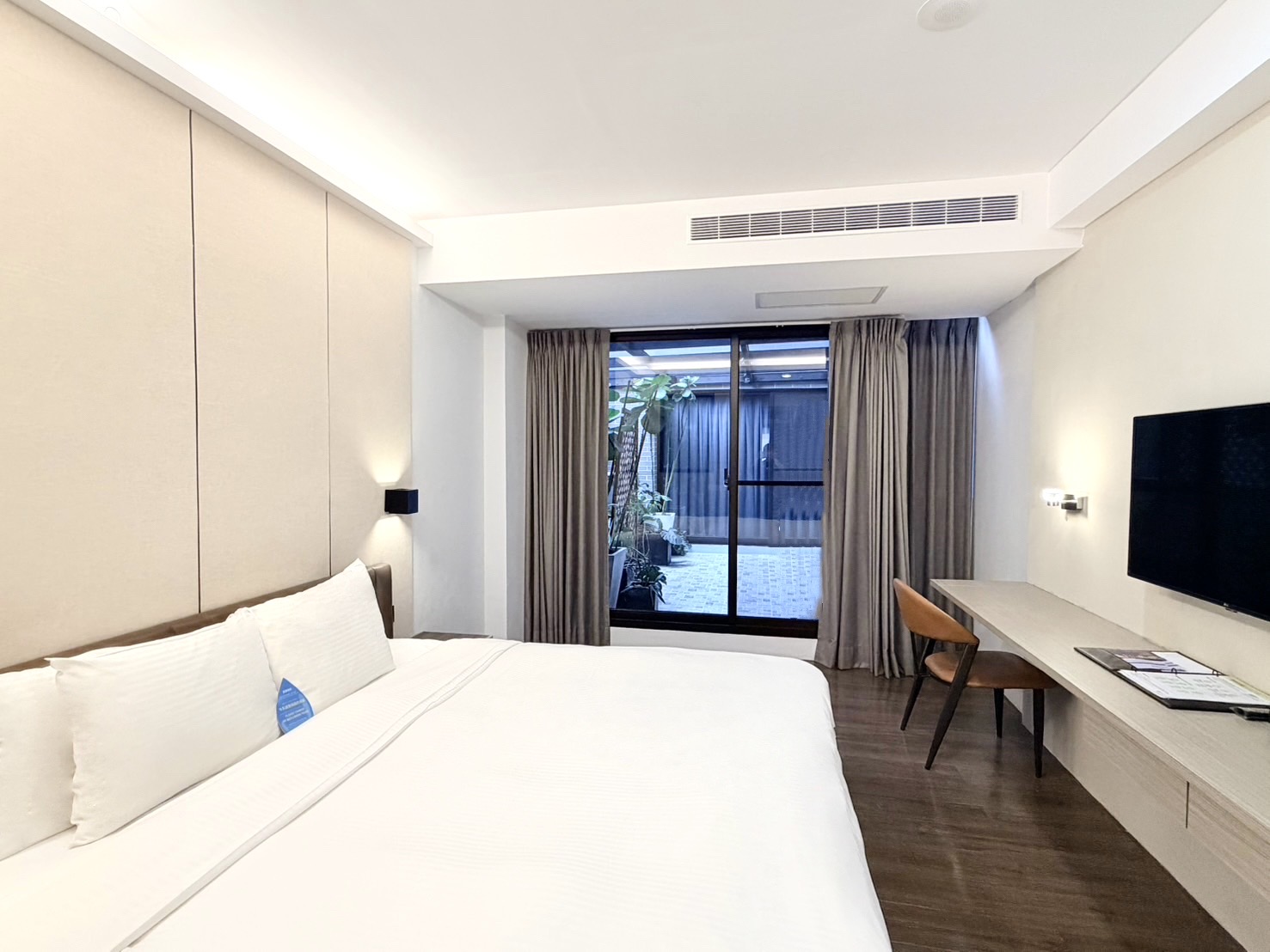 每間客房皆含加大雙人床一張,面積約占8坪,客房內附有免治馬桶、乾溼分離衛浴、42吋液晶電視,寬敞而舒適的空間,是您最佳選擇。擁有私人連通陽台,晚上可在此聊天小憩,充滿度假悠閒的氛圍。
